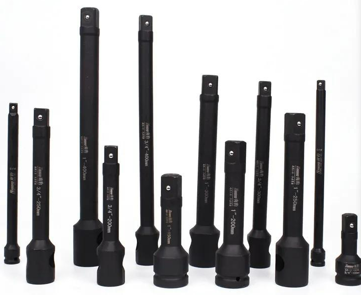 1、 套筒連接桿(簡稱接桿):上篇我們講到一般套筒最長的長度也只有80mm左右,假如我們在實際使用中,需要被拆的螺絲其空間或深度超過80mm怎么辦呢,這個時候就需要在套筒上加一個接桿。一般接桿的以長度來命名其規格,最常用的接桿規格有:3”(75mm)、5”(125mm)、10”(250mm).根據接桿的方頭尺寸也分6.3mm系列(1/4”系列)、10mm系列(3/8”系列)、12.5mm系列(1/2”系列)、19mm系列(3/4”系列)、25mm系列(1/”系列),使用時跟套筒規格一一對應即可。